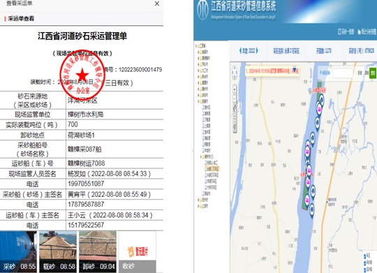 二,2019年10月,宜春市水利局率先在樟樹實施電子化采運單試點,形成河道砂石開采、運輸、銷售的全程監(jiān)控一體化 “電子采運管理單”,并于2020年1月份開始試運行,2021年2月正式運行。“現(xiàn)在通過電子化采運單,采砂辦能更準確地掌握每輛采運砂船的采運數(shù)據(jù)和具體位置,更有針對性地管理開采活動。同時,電子采運單的推行也保障了采運砂數(shù)據(jù)的真實性和可信性,大幅提高了采砂管理效率。”樟樹市采砂辦主任彭小如說。