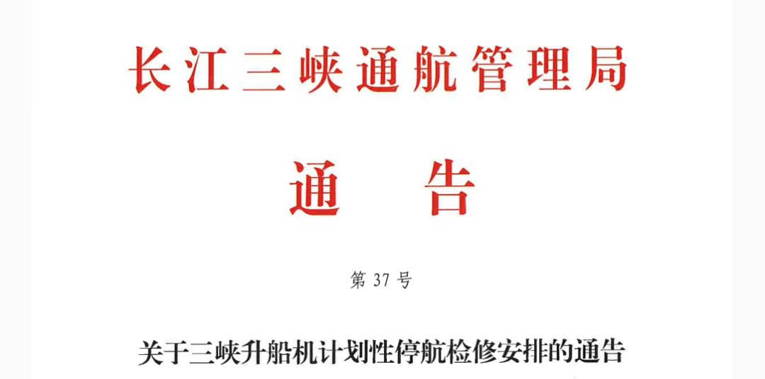 根據(jù)《長航局關(guān)于2022年三峽升船機(jī)計劃性停航檢修有關(guān)事宜的批復(fù)》(長航函道〔2022〕251號)有關(guān)要求,現(xiàn)將2022年三峽升船機(jī)計劃性停航檢修安排通告如下: